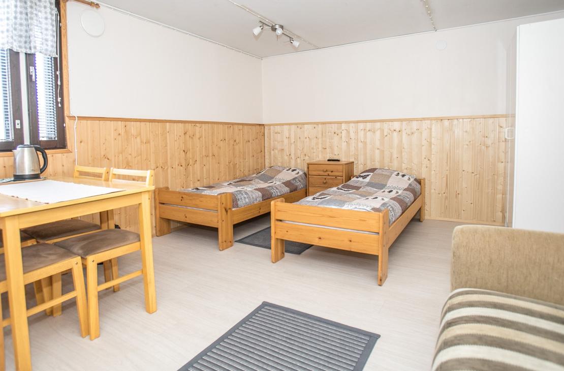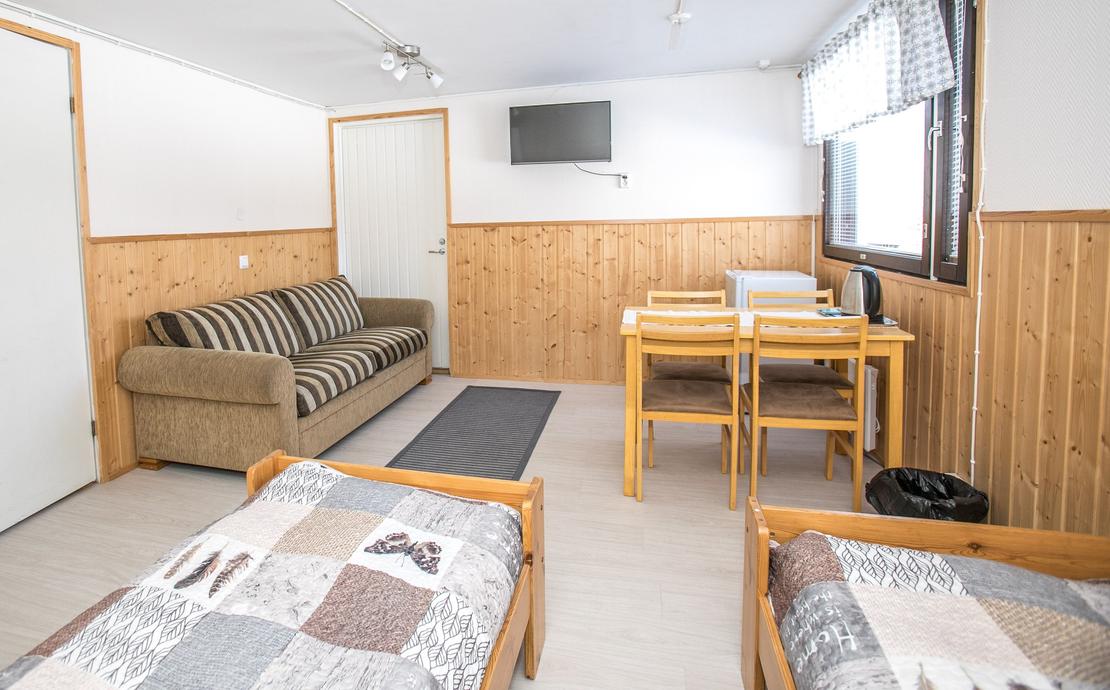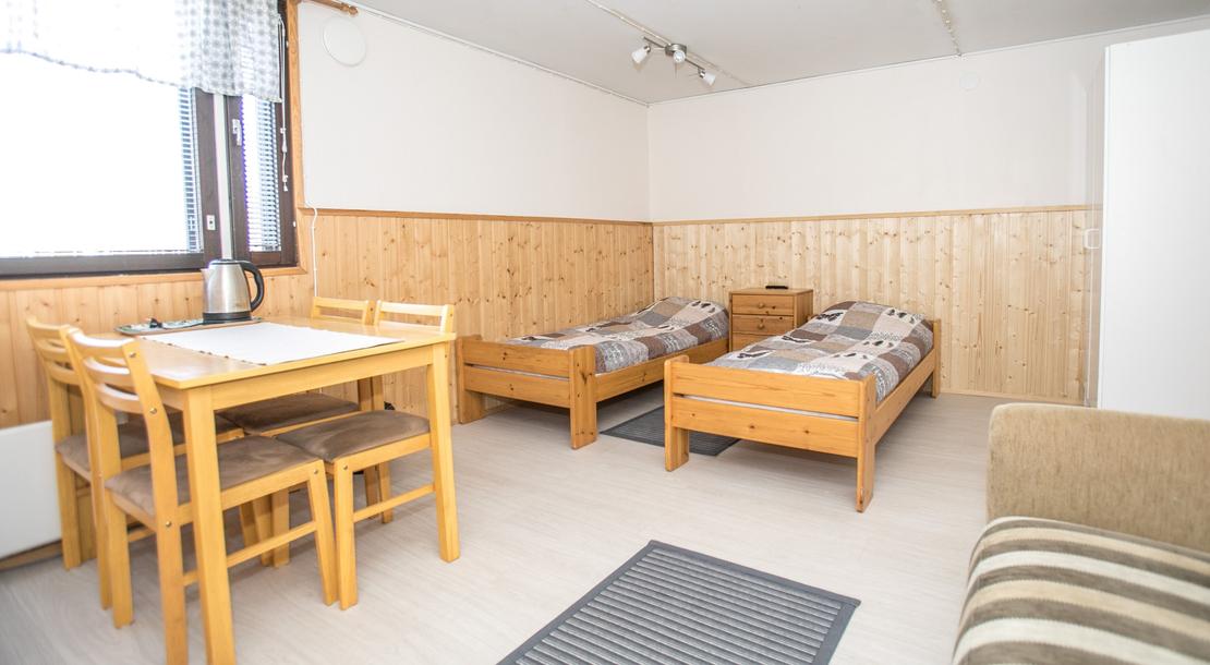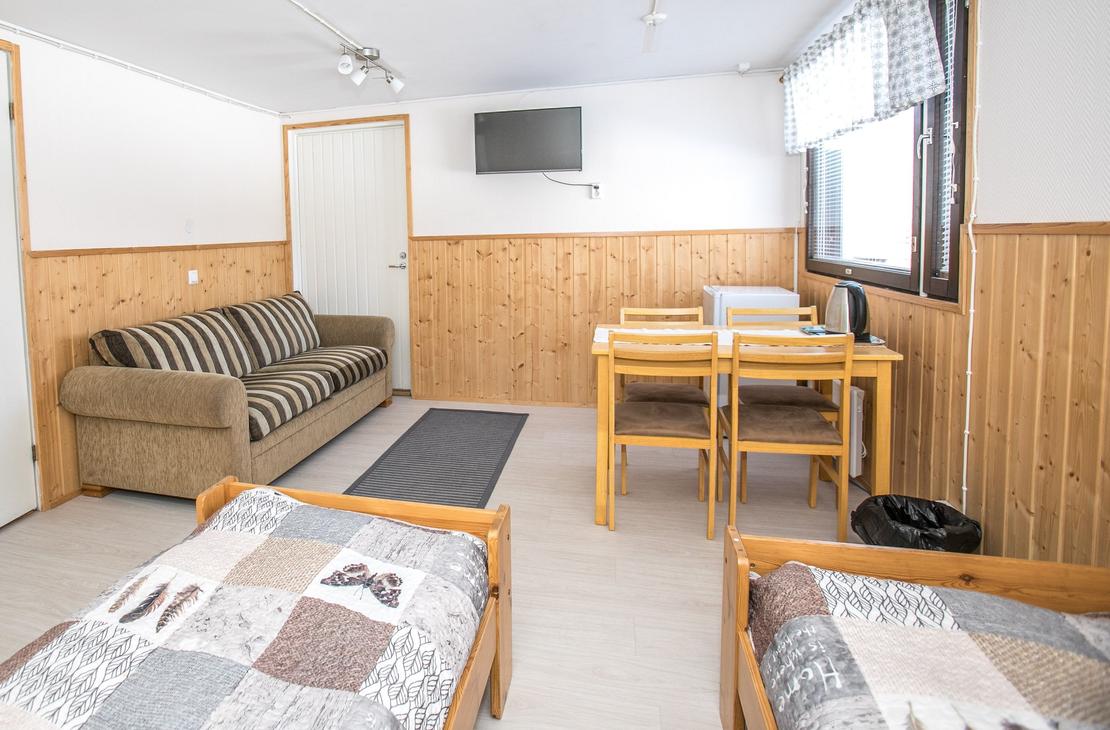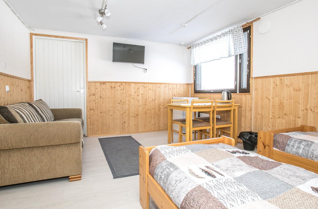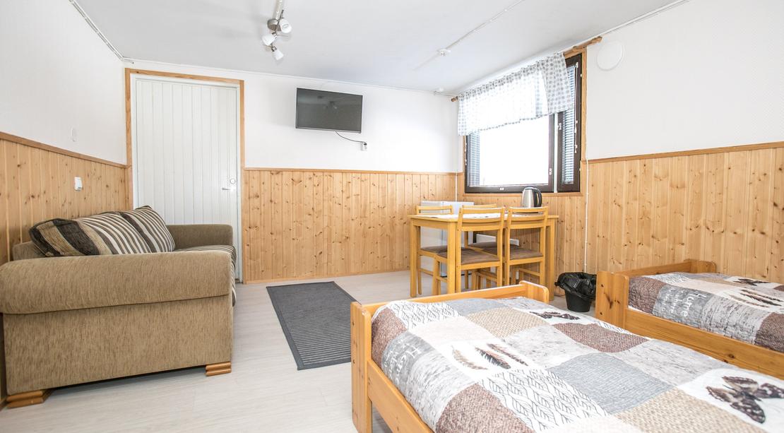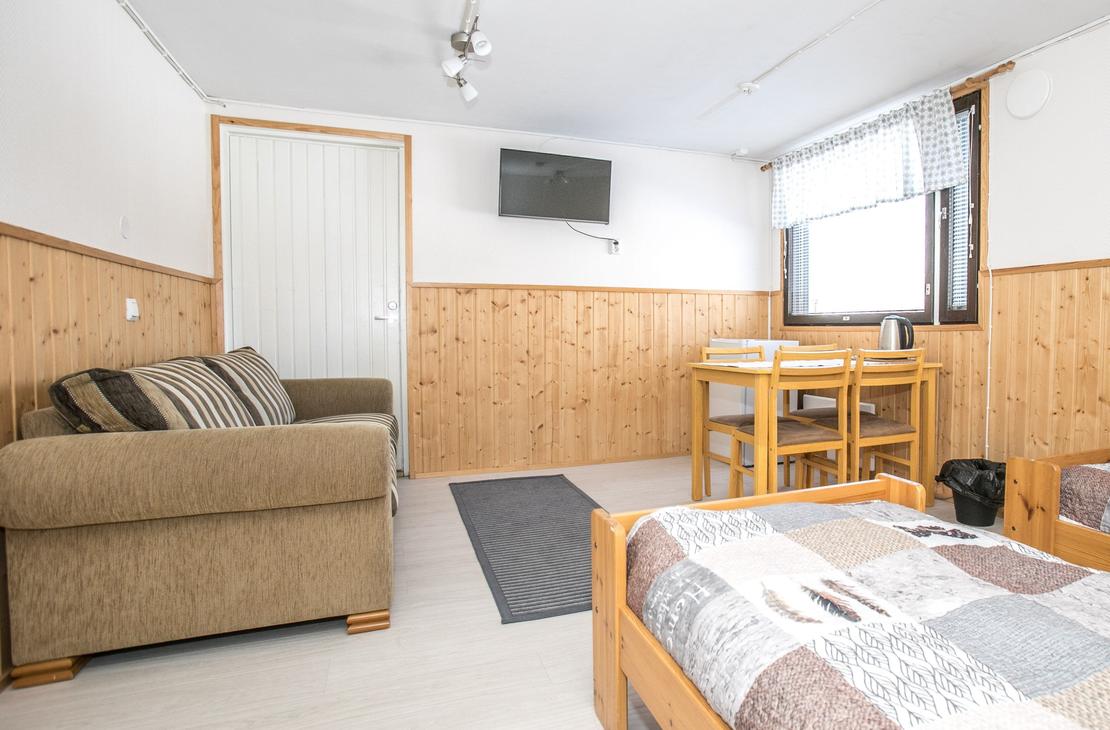 Economy apartment in the Yard House (Pihatalo) beds for 4, own toilet and shared shower in the sauna building next to the lake (about 70m walk). TV, fridge and a electric kettle in the room. Shared kitchen.