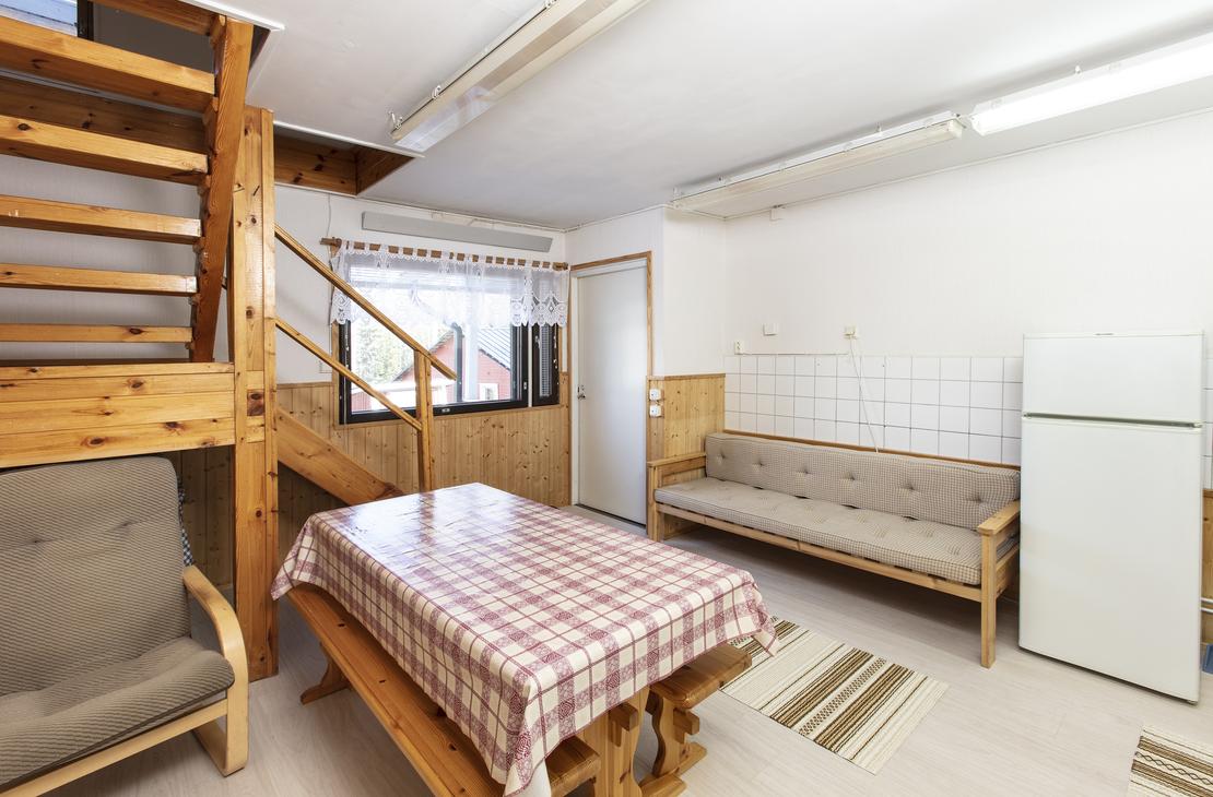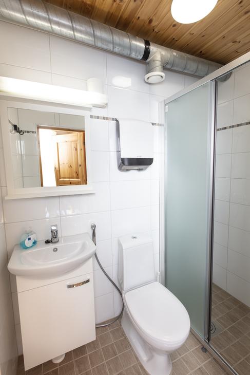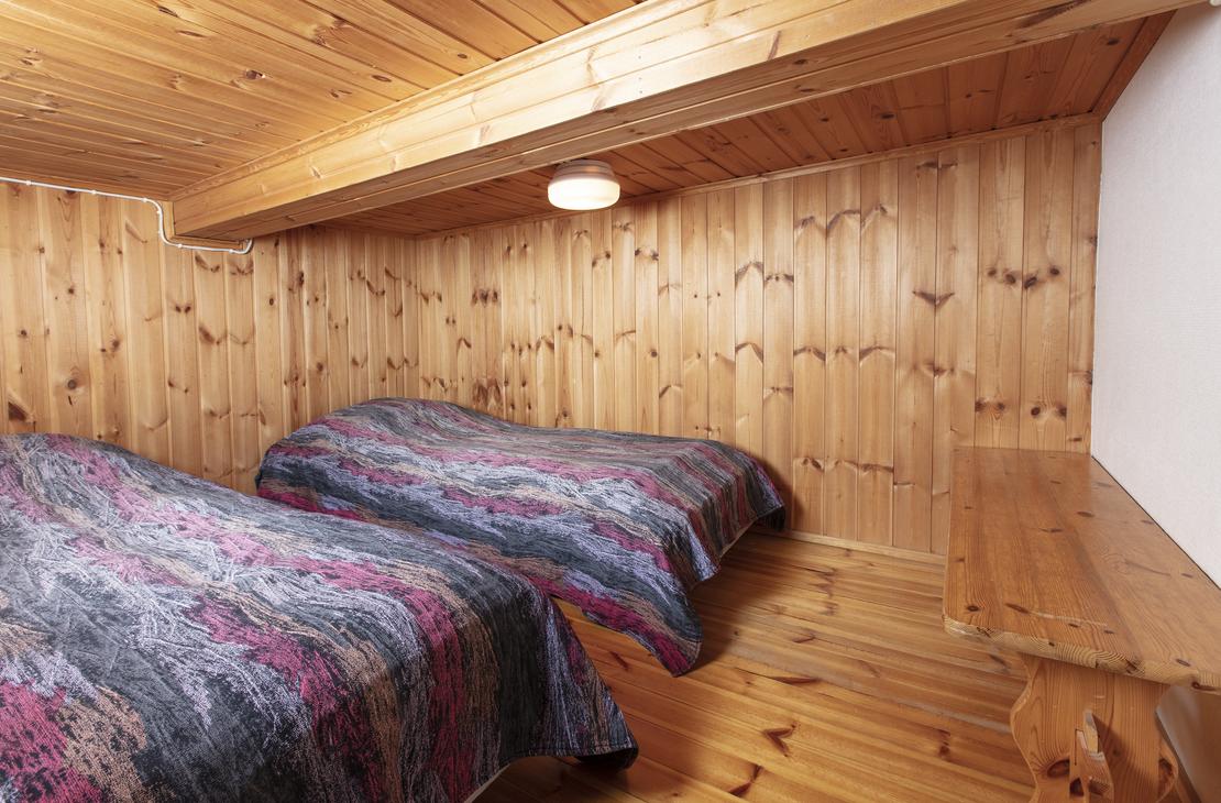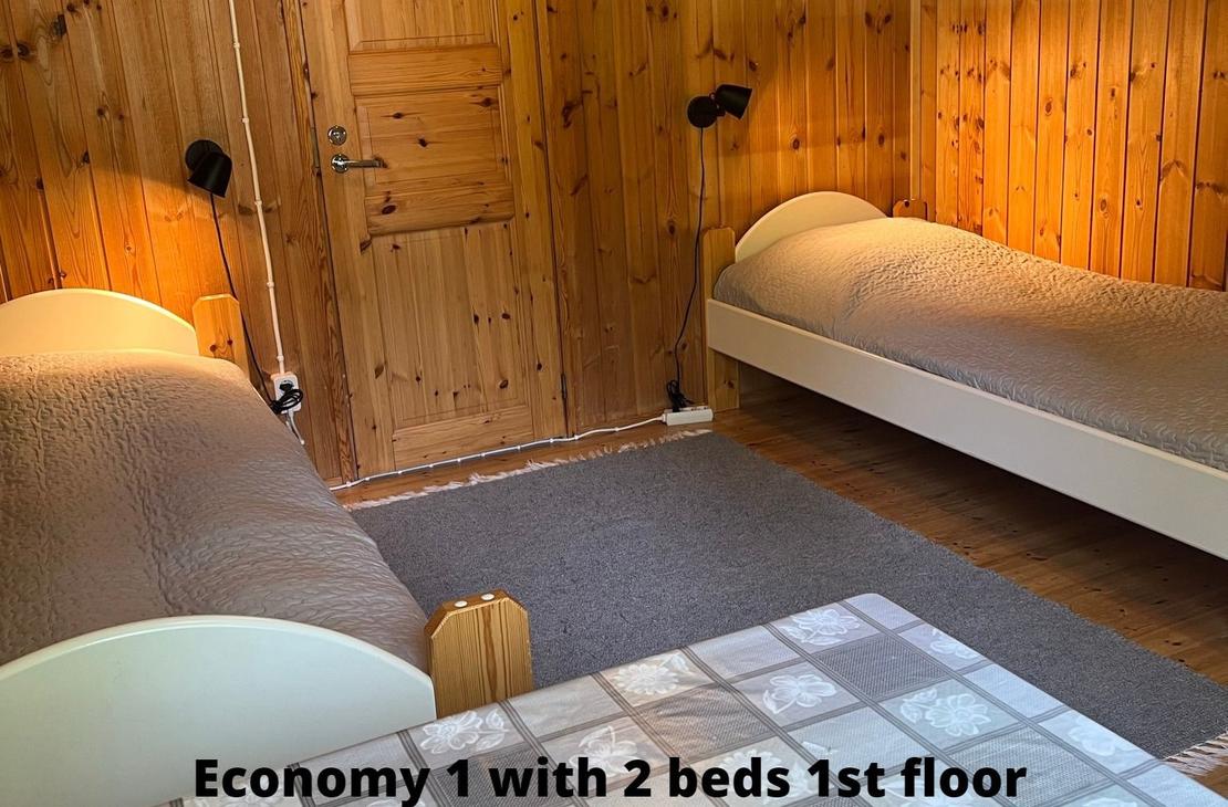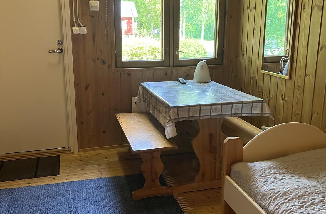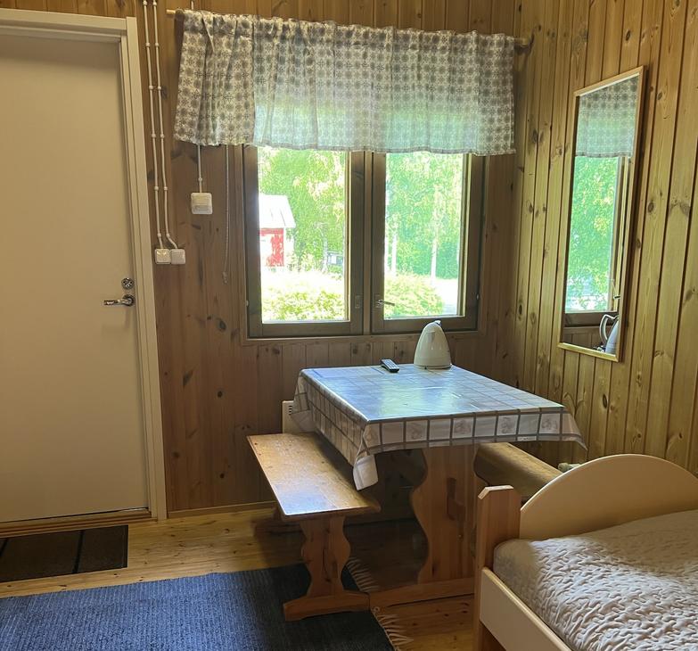 Affordable option in the resort's Yard House. Two separate 80 cm beds on ground floor and frame mattress beds for two people in the loft. The room has its own toilet and shower, as well as a refrigerator and kettle with mugs. Shared kitchen available. Bathroom renovated in 2019.