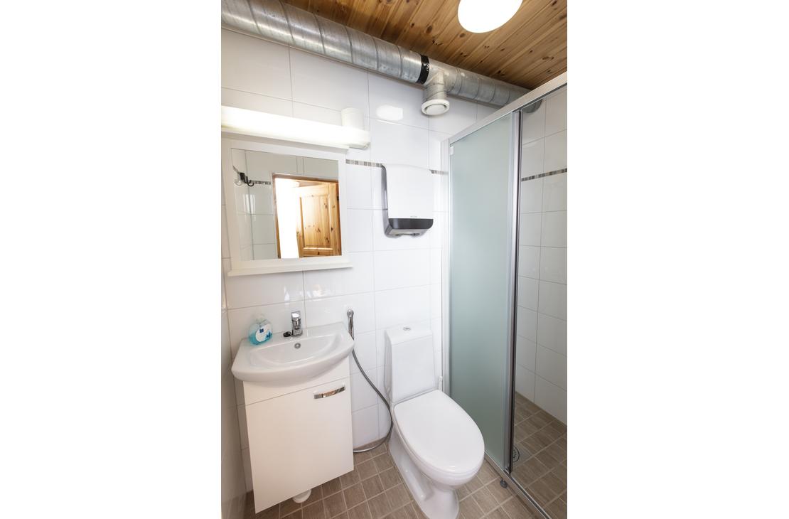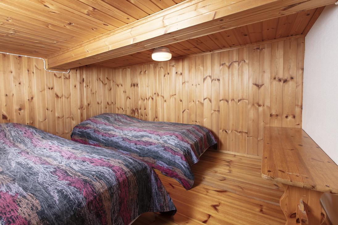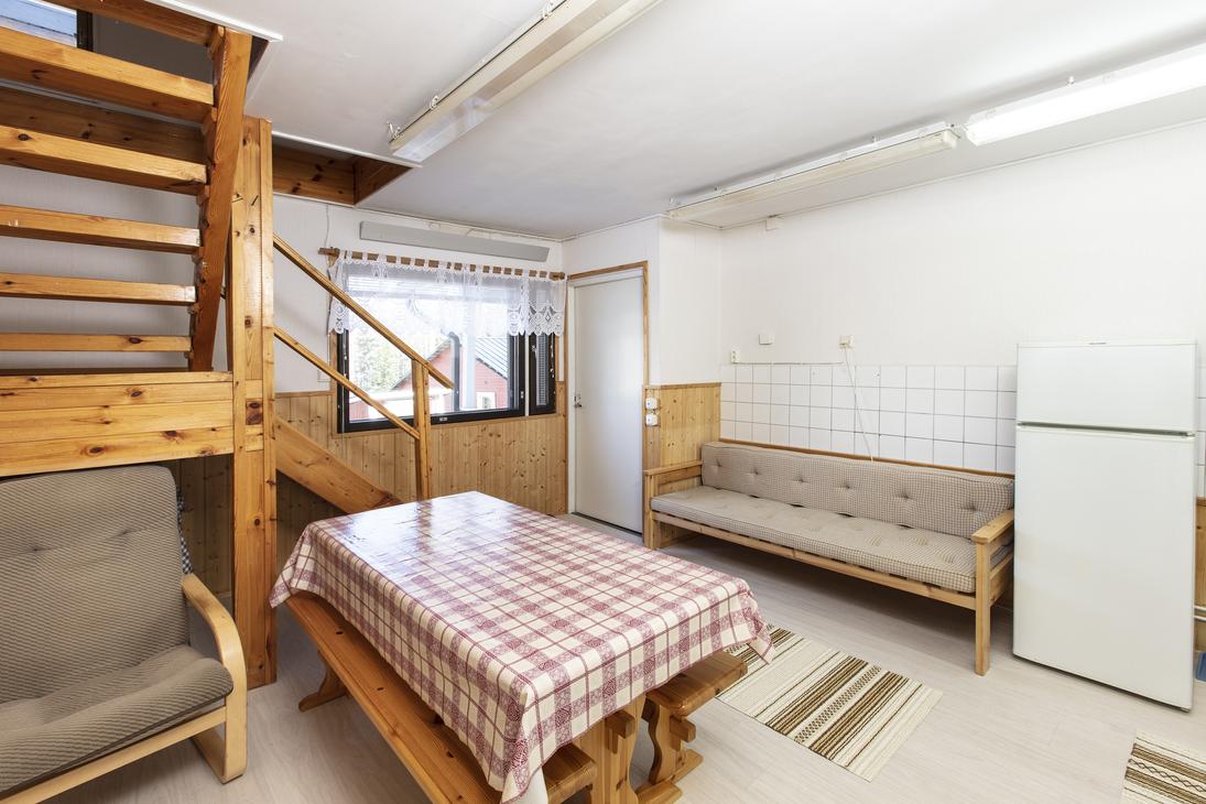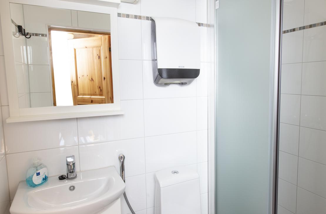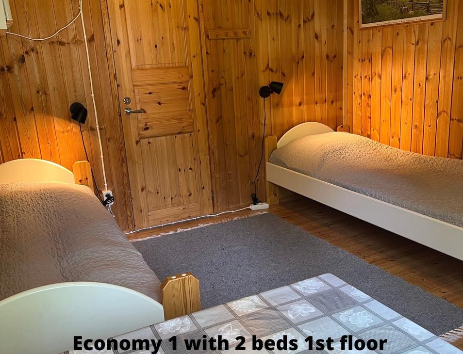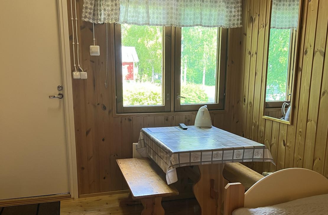 Affordable option in the resort's Yard House. Two separate 80 cm beds on ground floor and frame mattress beds for two people in the loft. The room has its own toilet and shower, as well as a refrigerator and kettle with mugs. Shared kitchen available. Bathroom renovated in 2019.